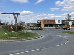 After the roundabout was built in the 1950s, a number of petrol stations were attracted to the area. One, called Gibbet Filling Station, was positioned north of here. It opened in 1958 and was branded Nafta. Little Chef applied to build a restaurant here in 1961, but ultimately it didn't happen. Highway Restaurant opened instead, before closing in the 1970s. The land is now a hotel.