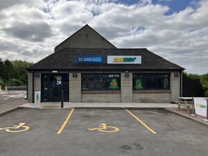 MFG inherited planning permission to transform the former restaurant building and workshop garages into a café and shop, but this was later altered to allow two takeaway units to open in the restaurant space only. Greggs opened on 12 October 2023, with the Subway following on 16 November 2023. The Subway unit is the first in the country to feature self-order kiosks.