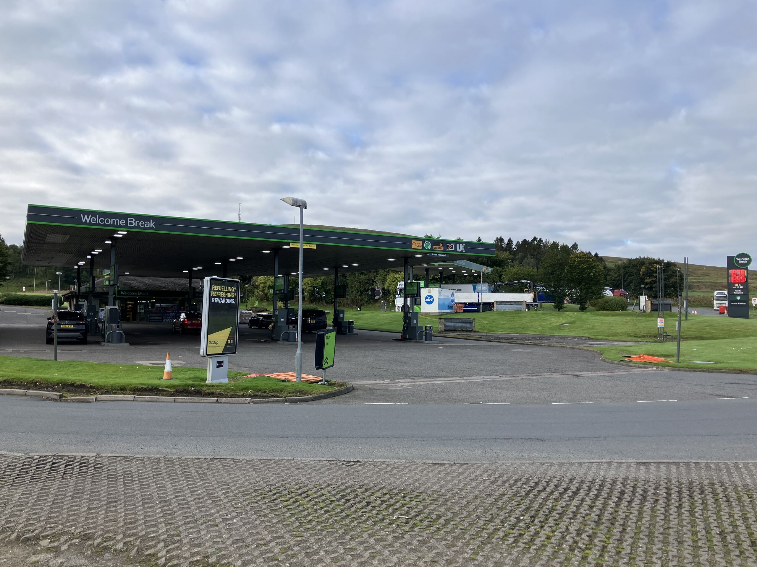 The Welcome Break forecourt.