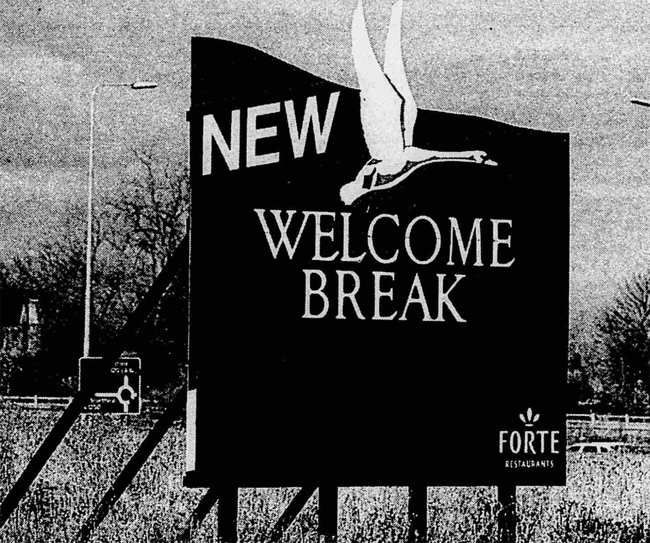 Sign promoting the new Welcome Break services at Birchanger Green.