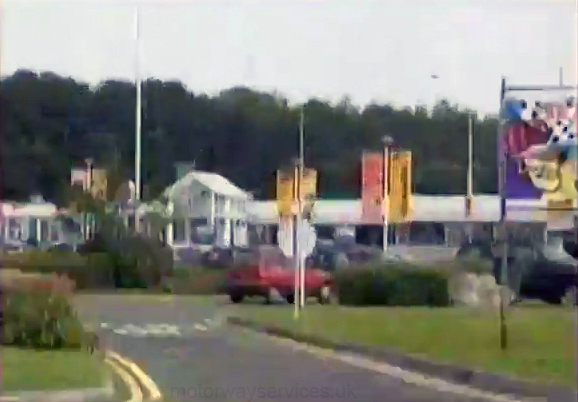 The view for drivers entering Burton-in-Kendal services in 2000.