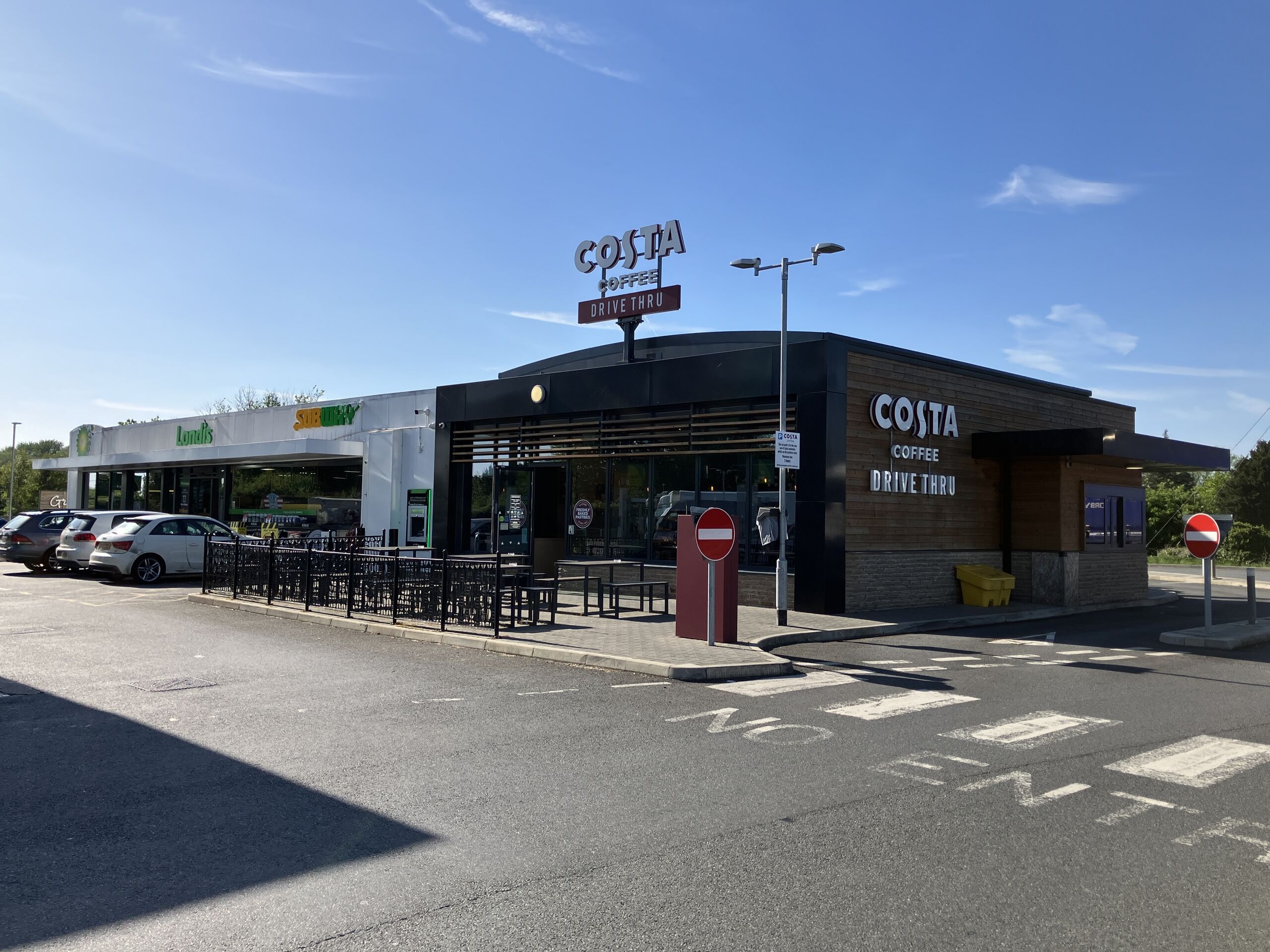 The Costa Coffee drive-thru, attached to the side of the sales building.