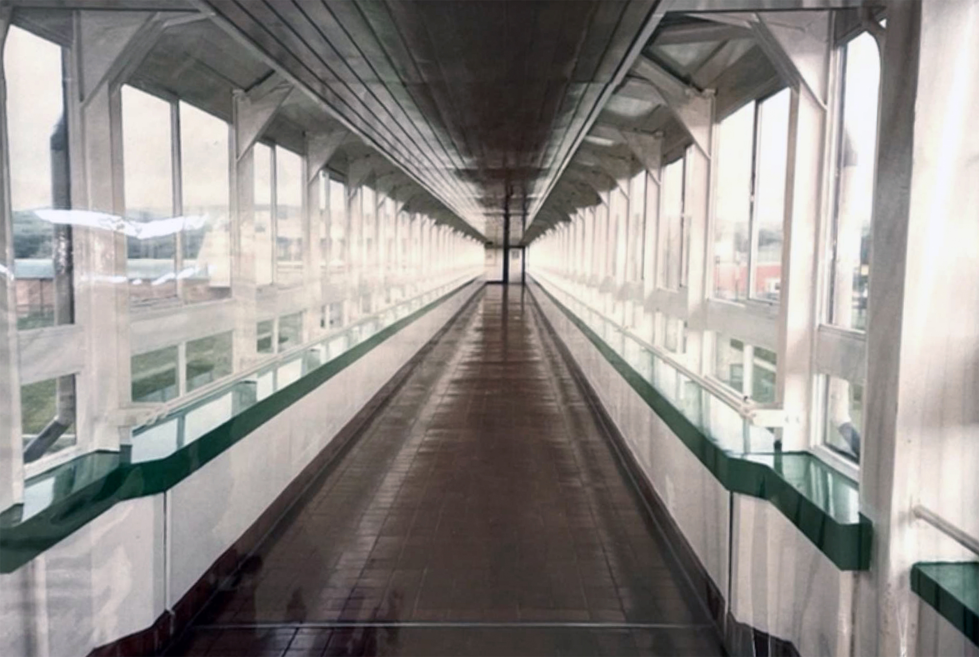 Inside the footbridge, painted in Pavilion colours. See also File:Lancaster bridge 2024.jpg.
