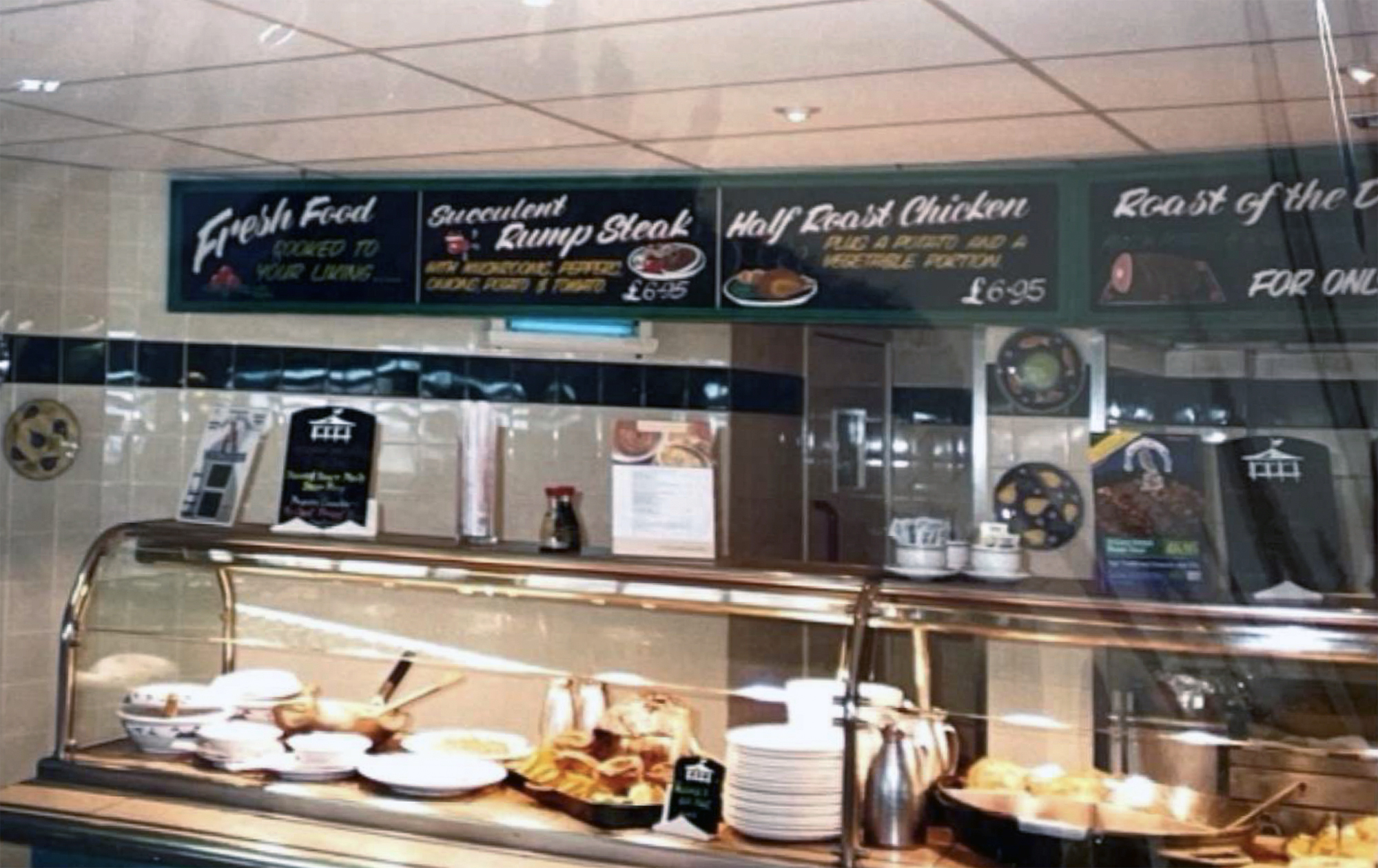 'Fresh food cooked to your liking' at Forton. See also File:Forton Pavilion Restaurant counter.jpg.