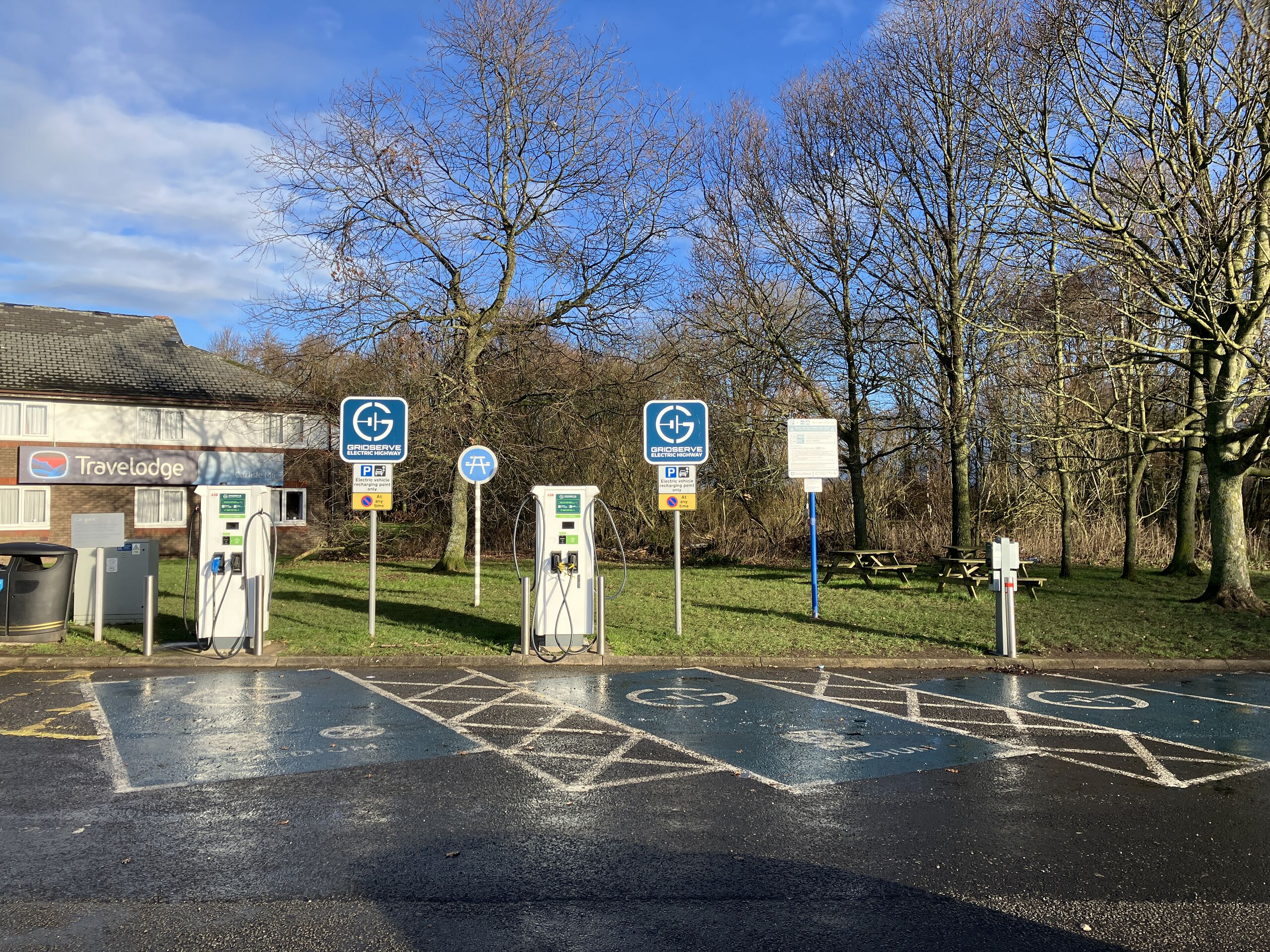The southbound low and medium power GRIDSERVE EV chargers.