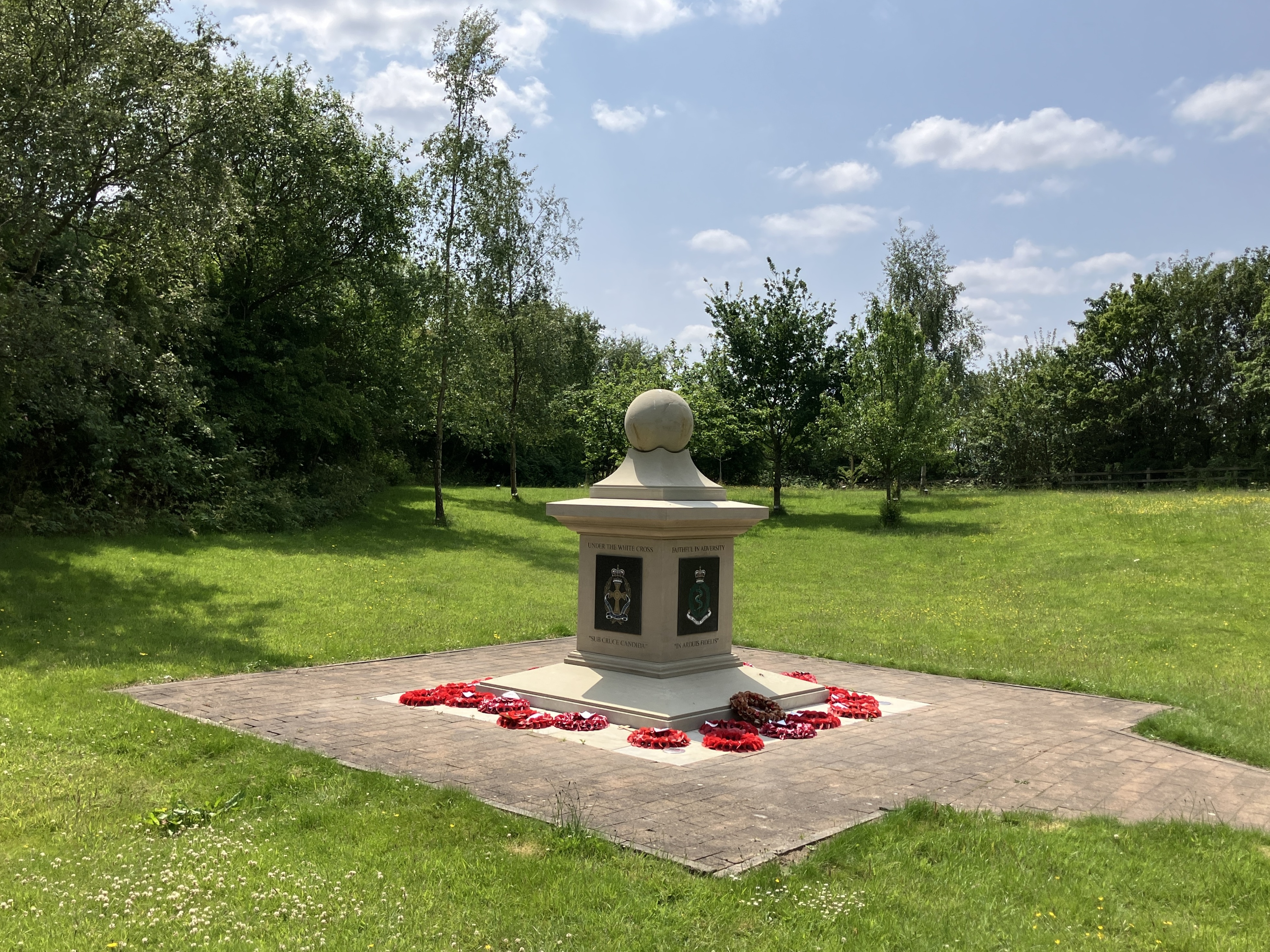 The memorial woodland, positioned behind the westbound main building.