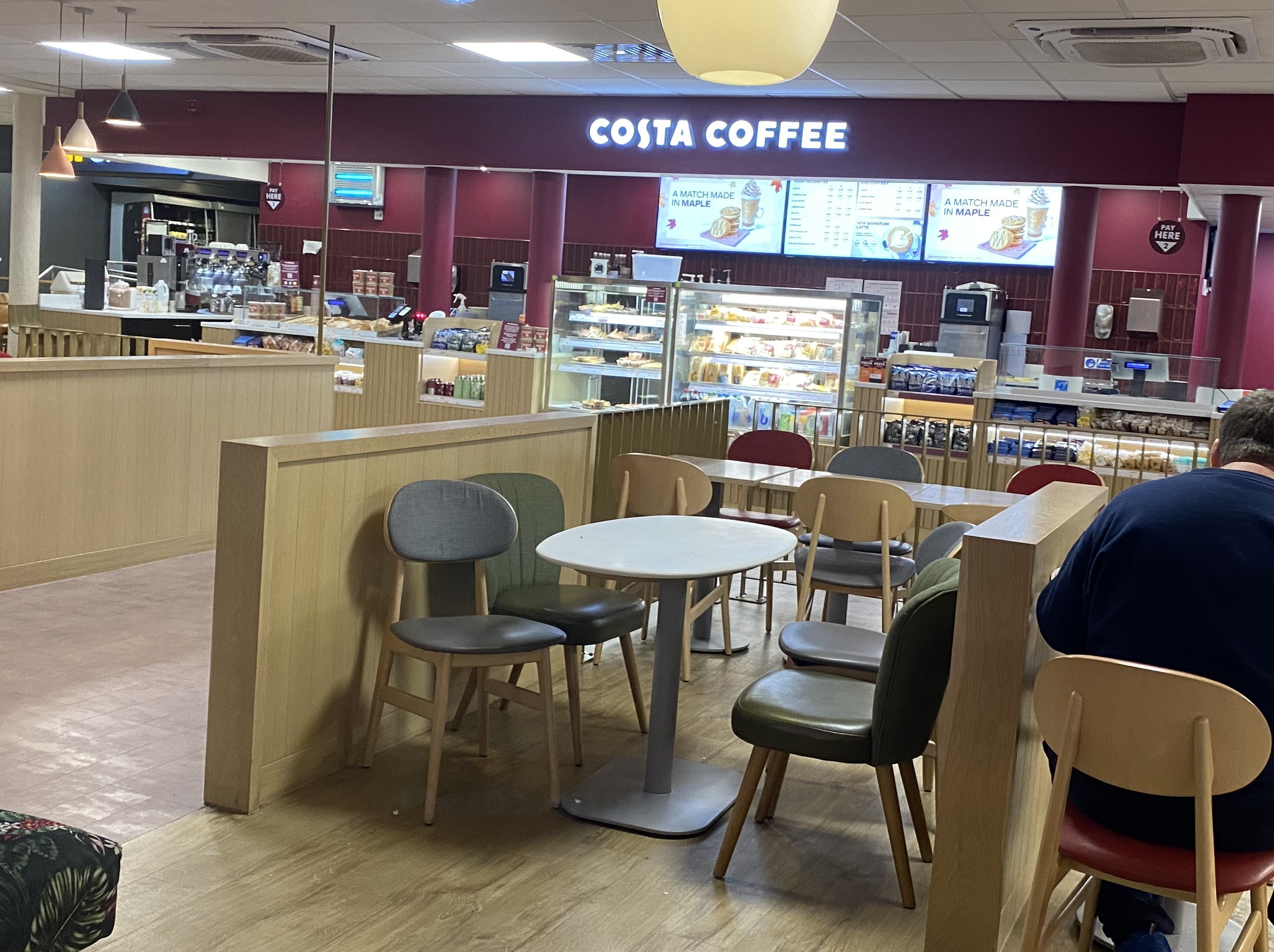 The Costa Coffee offer at Hilton Park northbound, which is now on your left when you walk into the building.