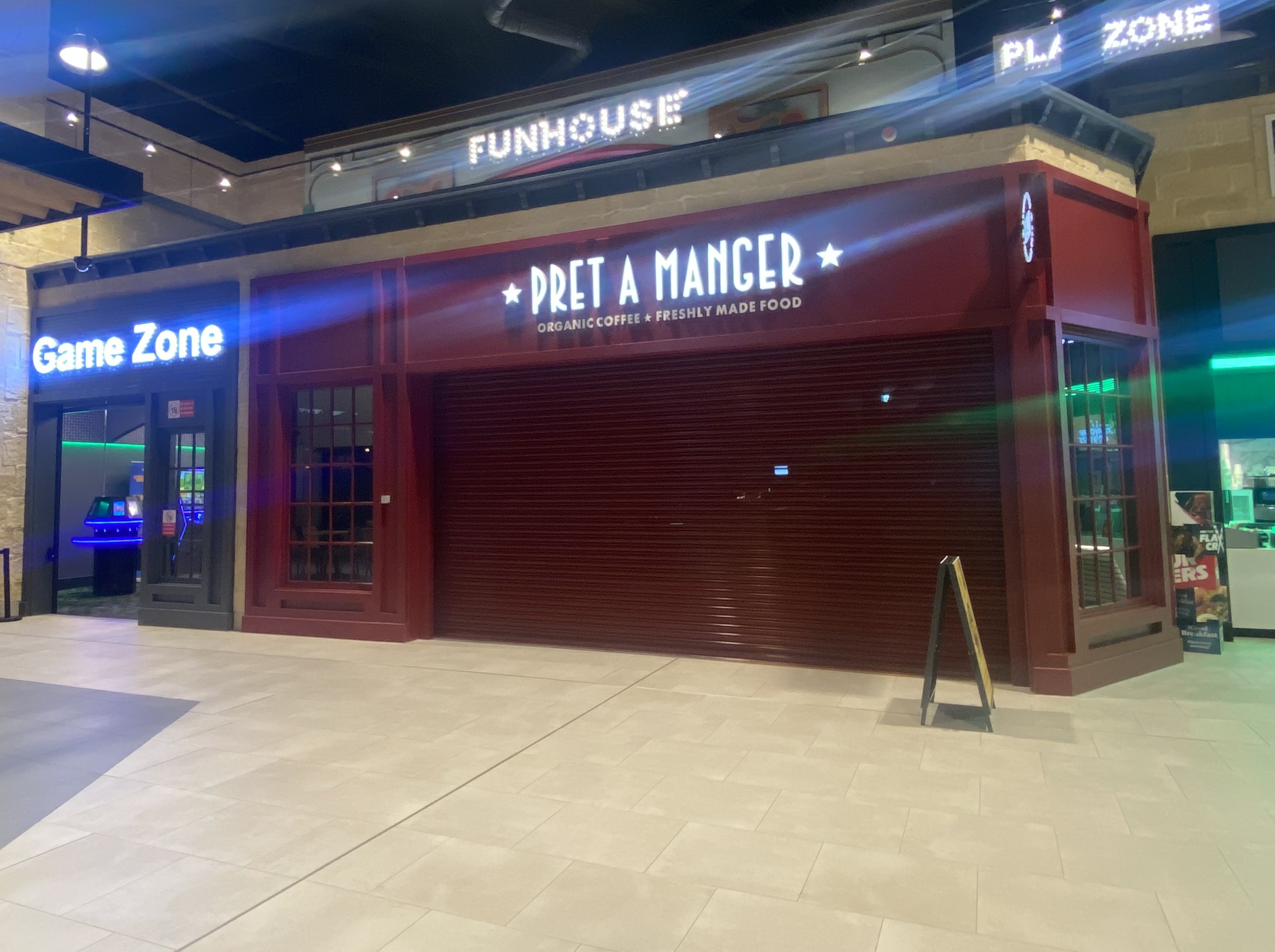 The Game Zone arcade and the Pret A Manger restaurant together at Rotherham, taken whilst the latter was 'closed' for the night. The main Starbucks unit is to the left; and the Chopstix/Good Breakfast combination unit is to the right.