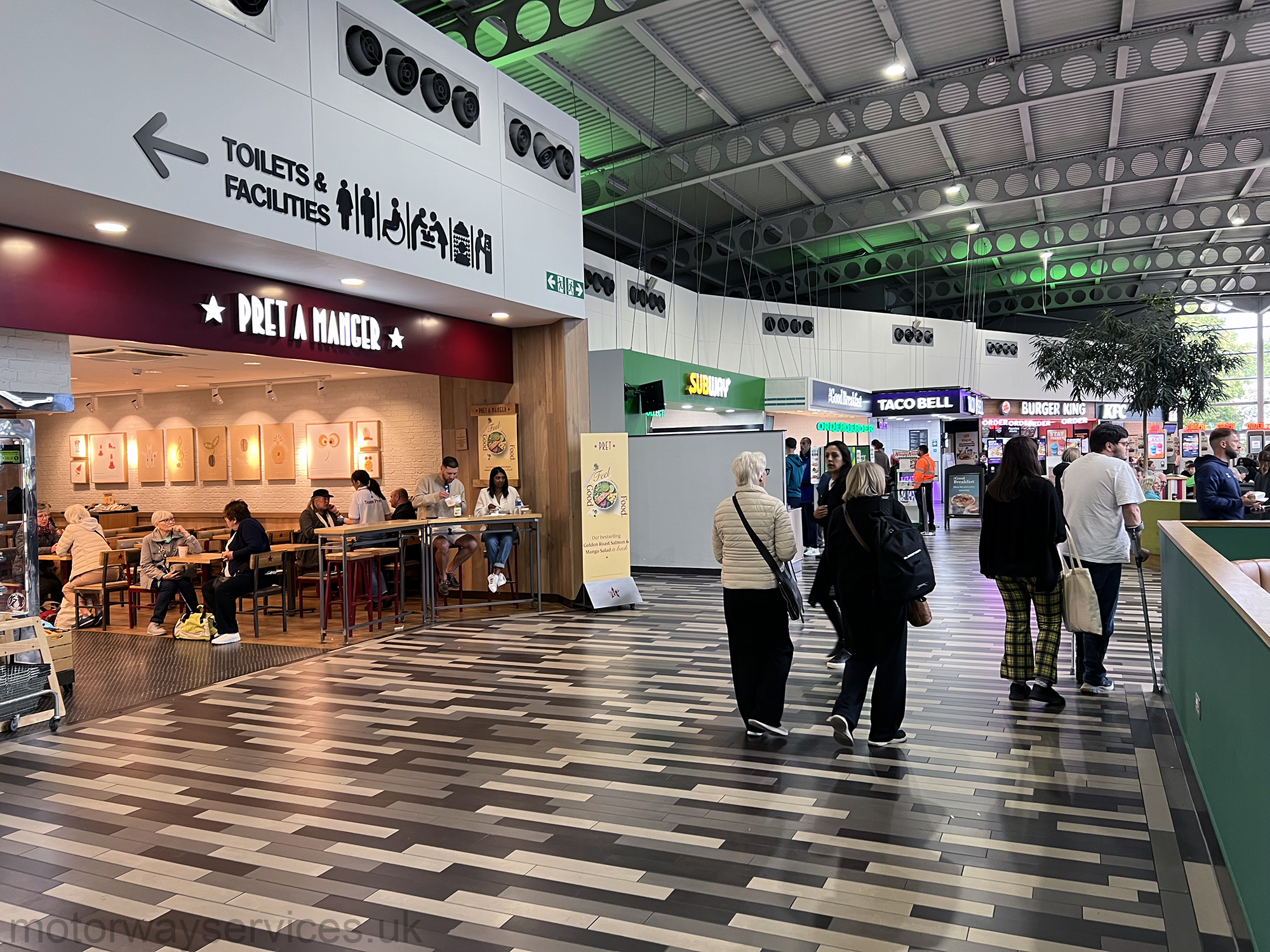 The interior of South Mimms services, looking along the back wall from the toilet area.