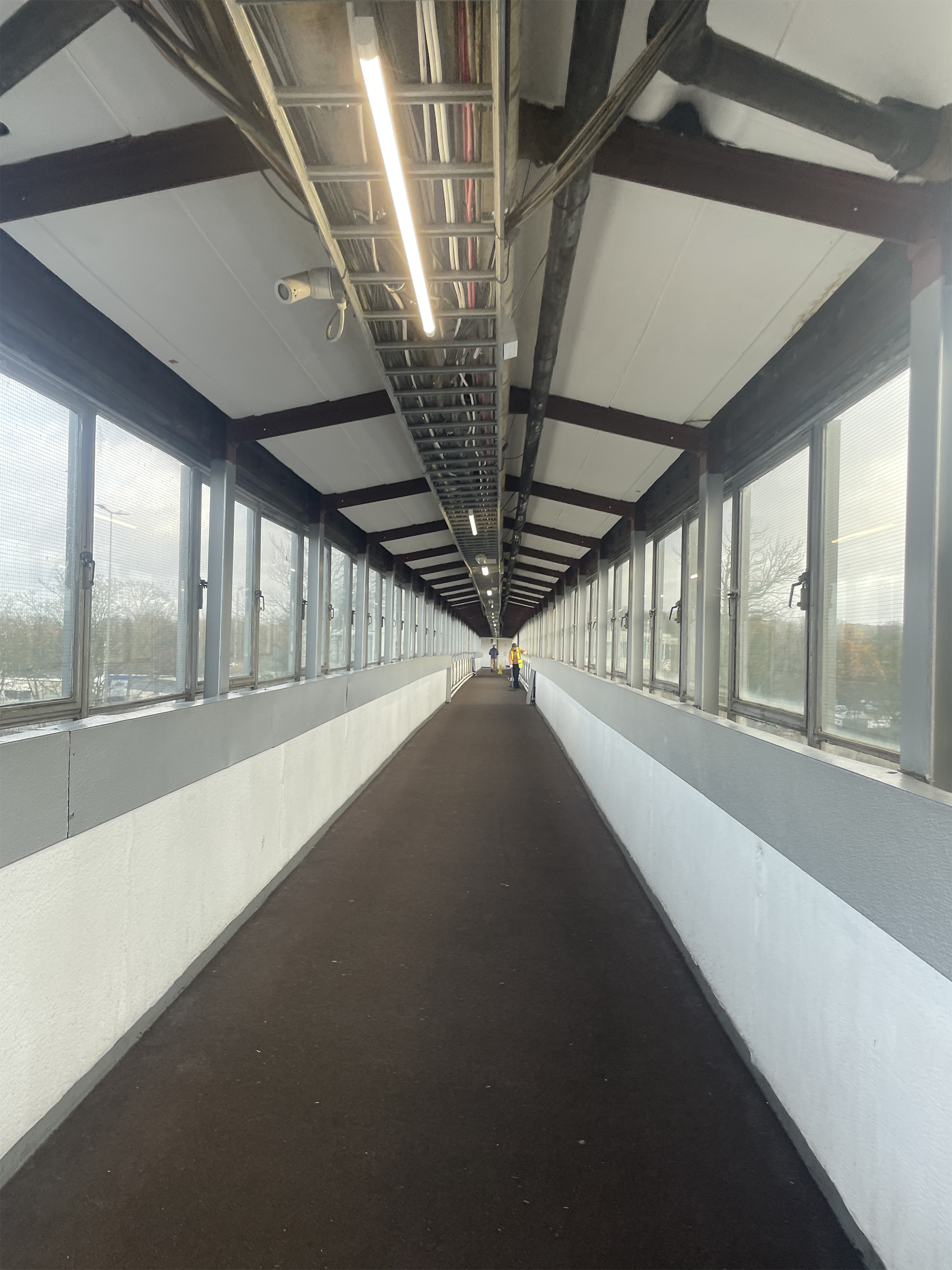 Photo: The footbridge at Hilton Park services in December 2025.jpg