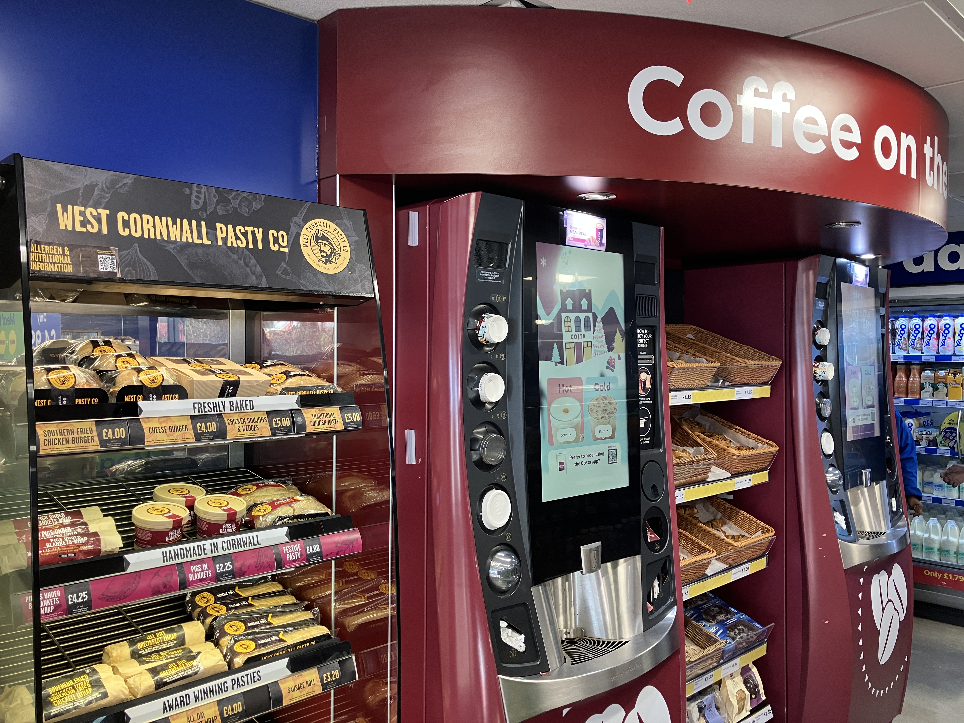 The Costa Express and West Cornwall Pasty food to go offers.