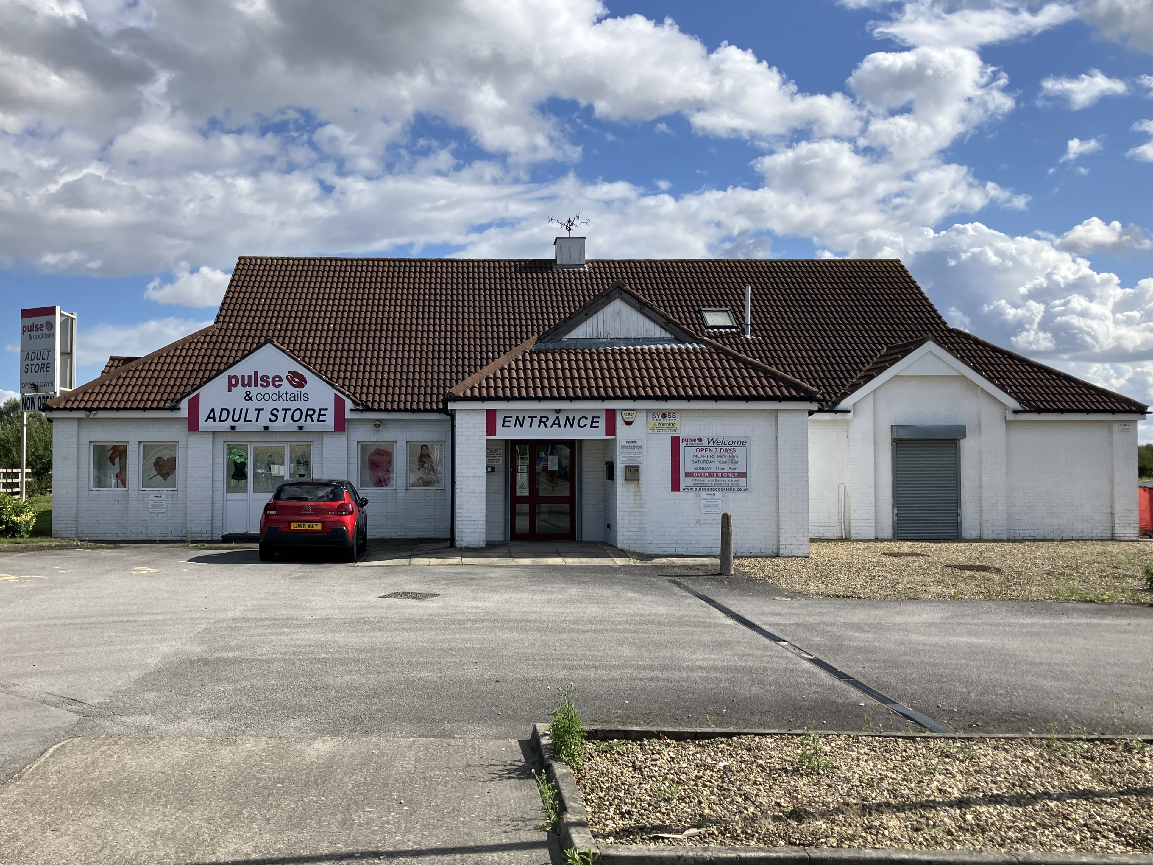 The former Happy Eater and Little Chef building, now an adult superstore.
