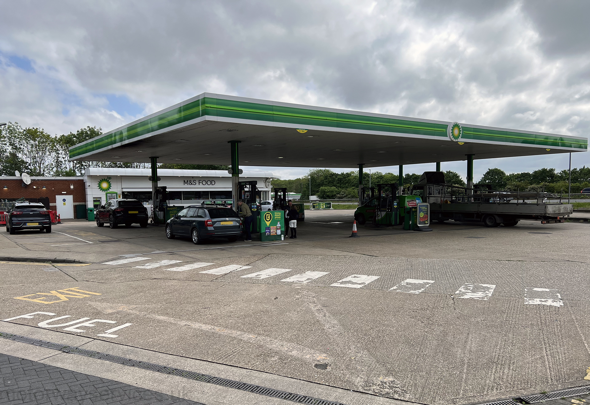 The forecourt at Wisley services.