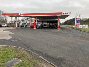 Once a pair of filling stations half a mile from the M1 at junction 29, now only eastbound facilities are available.