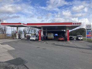 The service area is signed from the eastbound side of the road, between Temple Normanton and the M1.