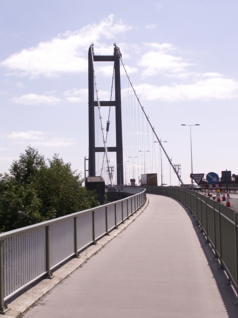 The footpath at the northern end of the bridge starts off like this. "Humber Bridge" is treated as a major destination along both the A15 and the A63, and you can see why.