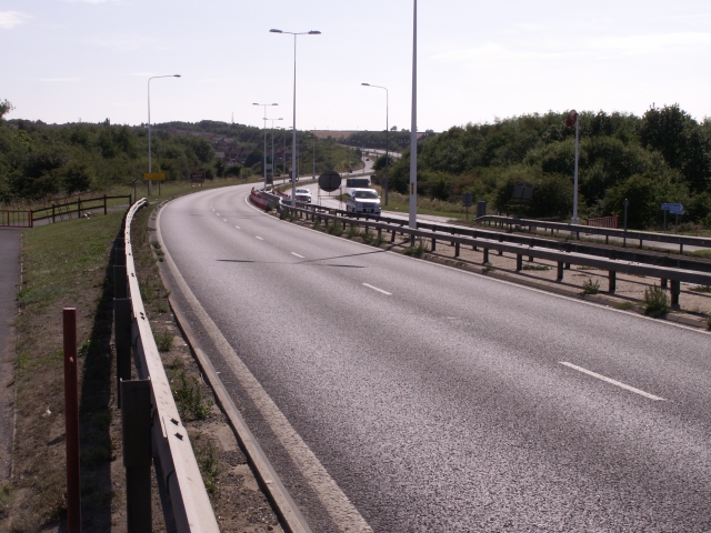 Heading east on the A63, the road between the M62 and Hull, it's impossible to miss the bridge. The bridge itself is part of the A15, which connects Hull to the M180 and Lincolnshire, but as the next photo shows there is no way to travel directly between the A15 and the A63.