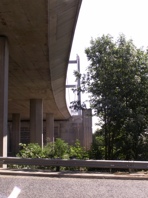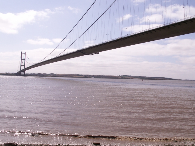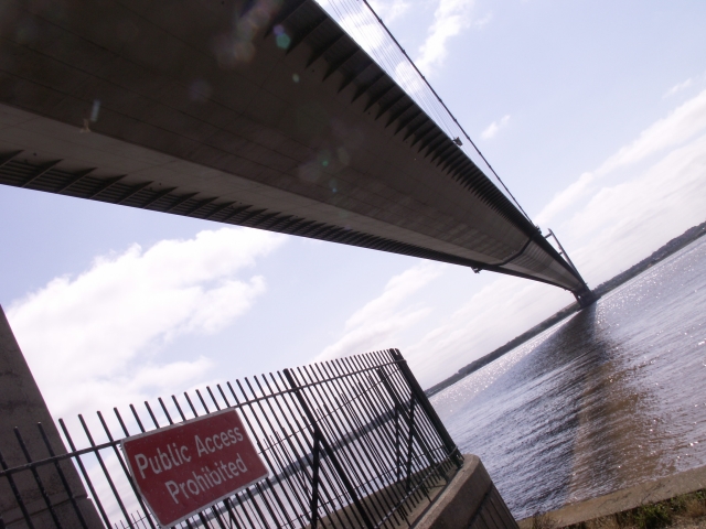 Standing beneath the bridge provides this odd perspective. It's nearly one and a half miles long and runs to Barton-upon-Humber on the other side. The bottom of the north towers can be seen to the left.
