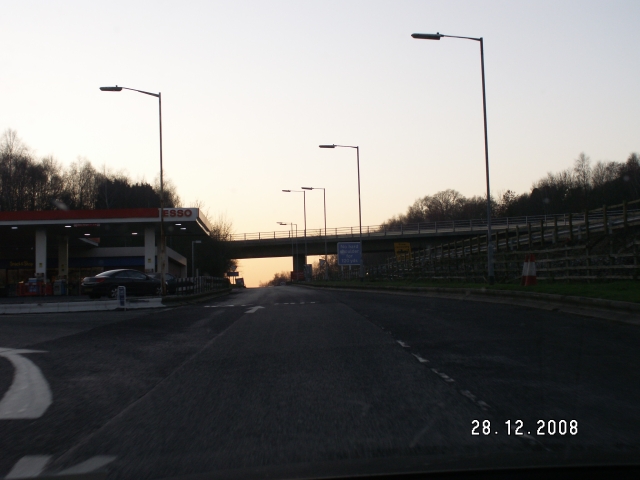 The gantry, looking east. If you allow me to briefly slip in to MSA mode I can tell you that the services are in a cutting about two metres below the motorway with a design almost identical to that of several unbuilt services, most noticeably Hatfield.