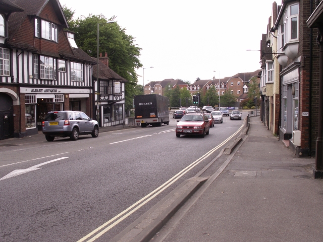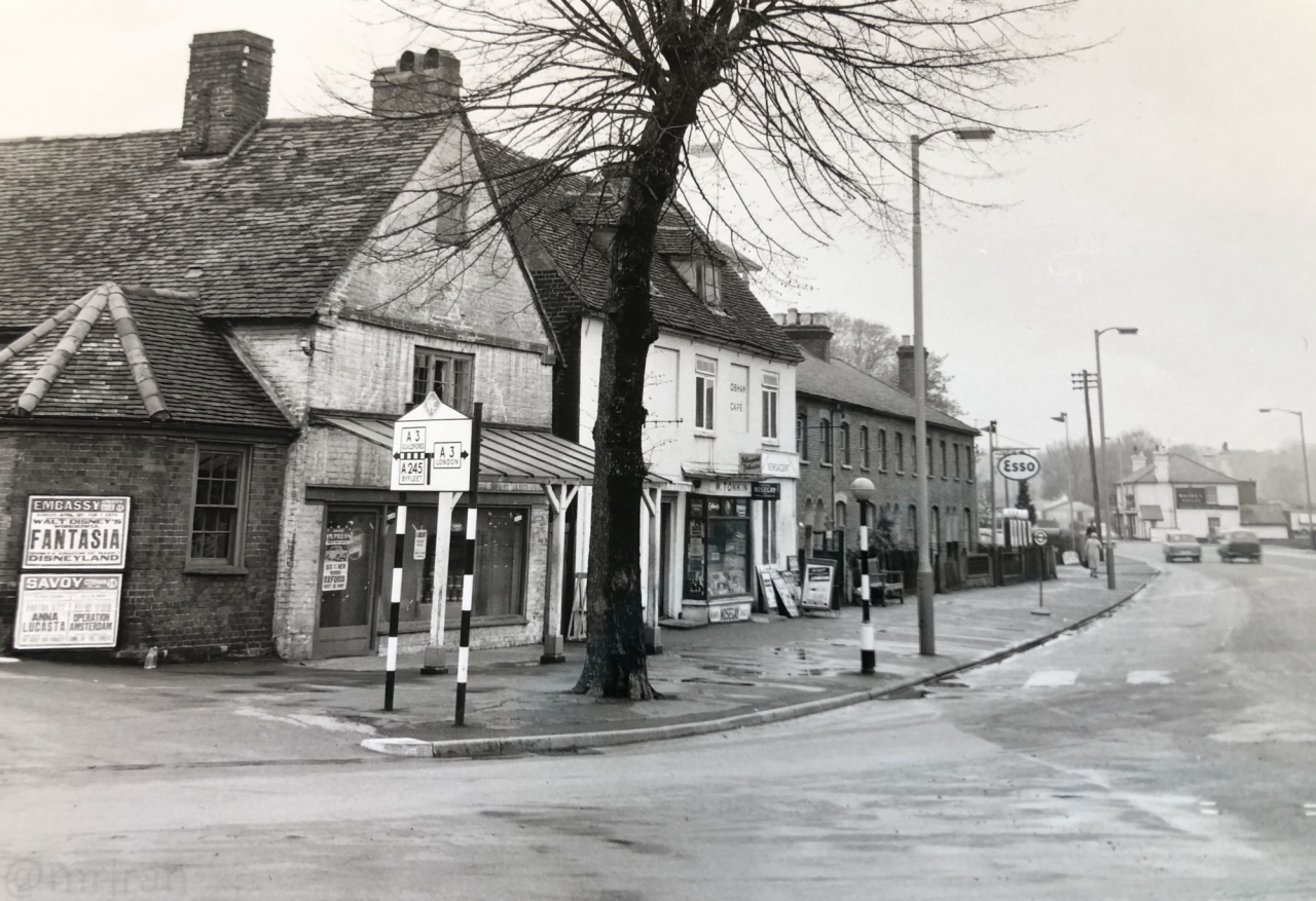 Looking east into Cobham, with The Antelope on the left and the White Lion Hotel in the distance. This photo marks the end of phase one.