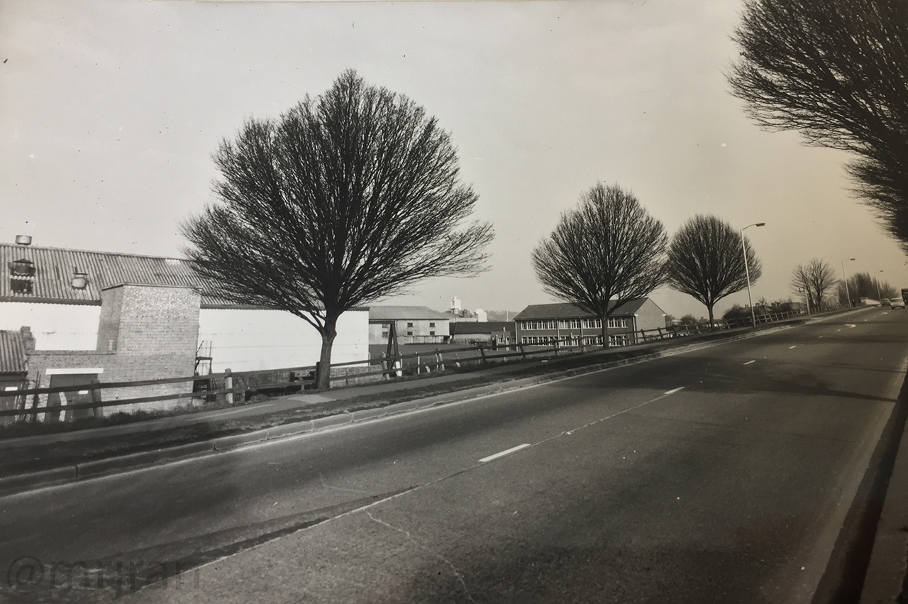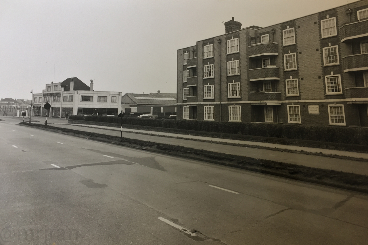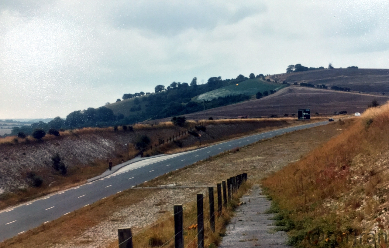Looking north from the large Portsdown Hill Road, before the markings were painted. Probably taken in 1979.