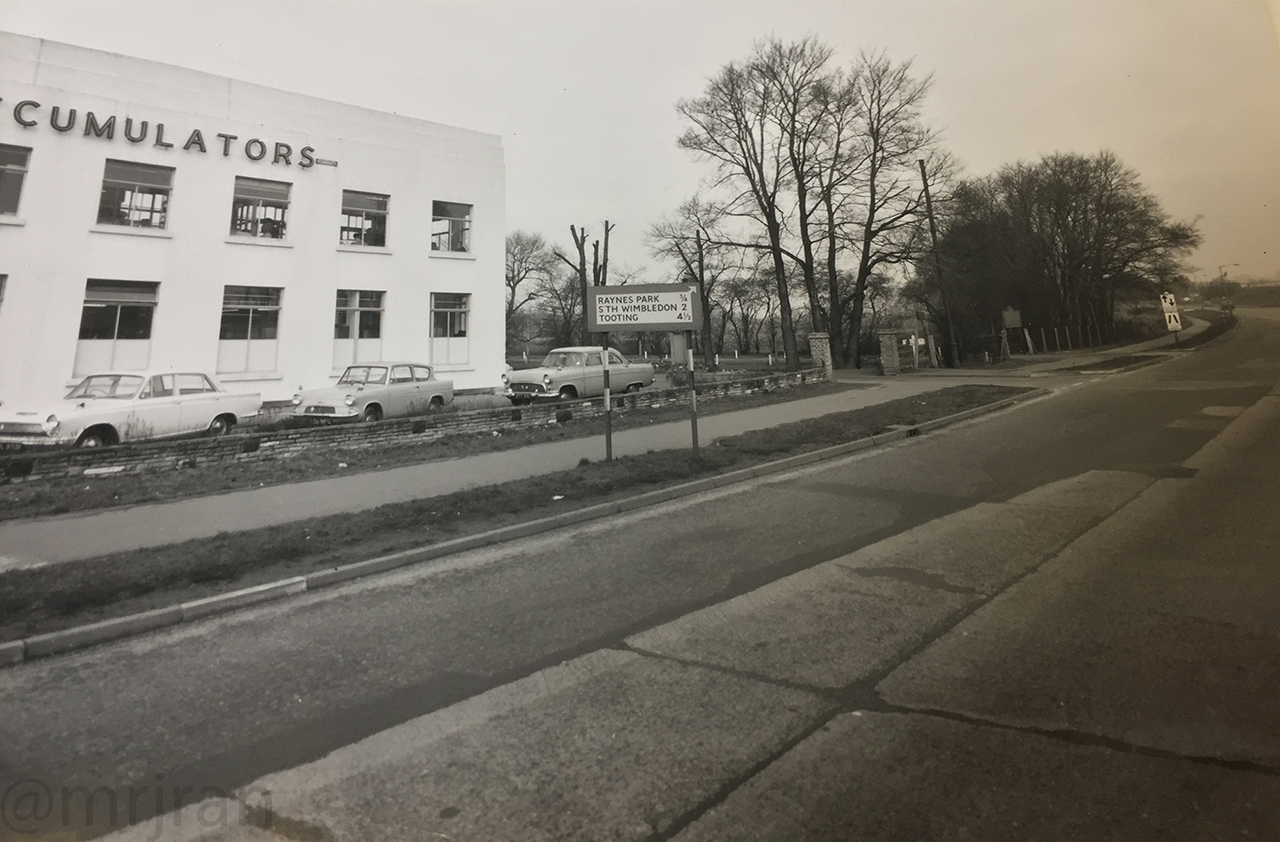 A pre-Worboys sign on the A3 approaching what's now the Bushey Road Flyover. In the distance, another sign warns that the road beyond here is single carriageway.
