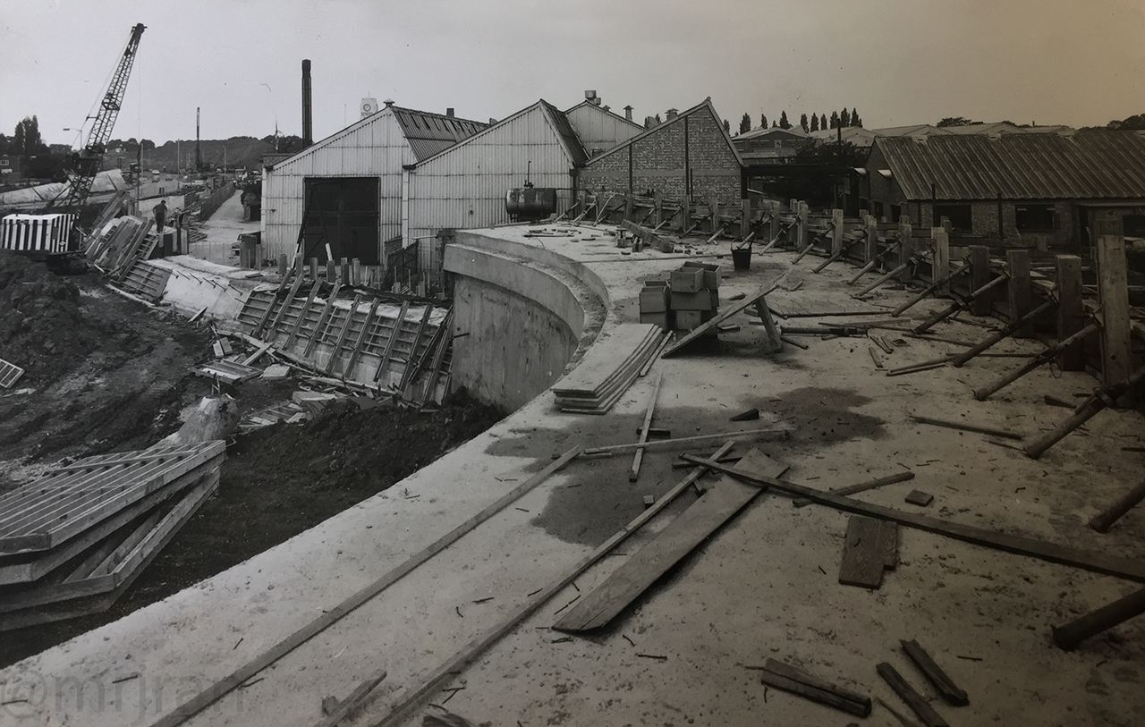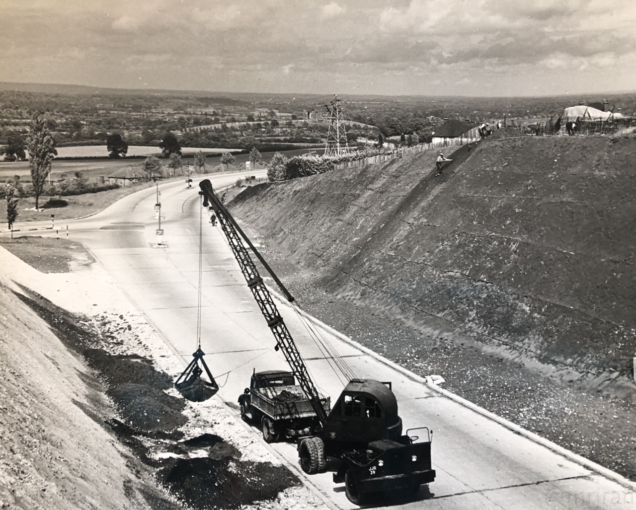 A3(M) J5, the Rusty Cutter, under construction. You can see the old route of Bedhampton Hill before the motorway was built.