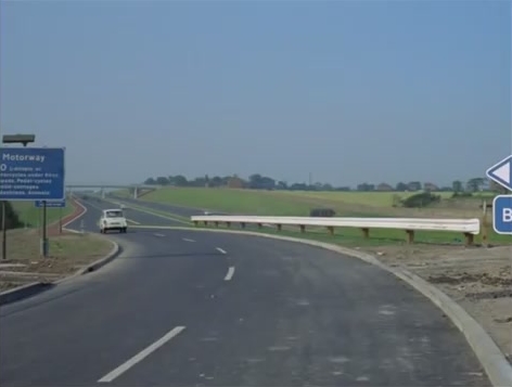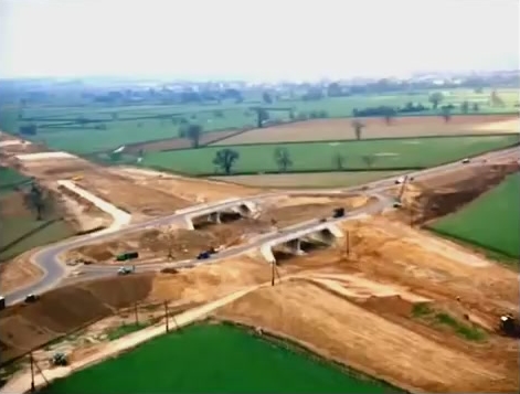 The newly-built Sprucefield Interchange, with the southbound exit having to give way (with pre-Worboys signage) to the northbound exit that was eventually removed.