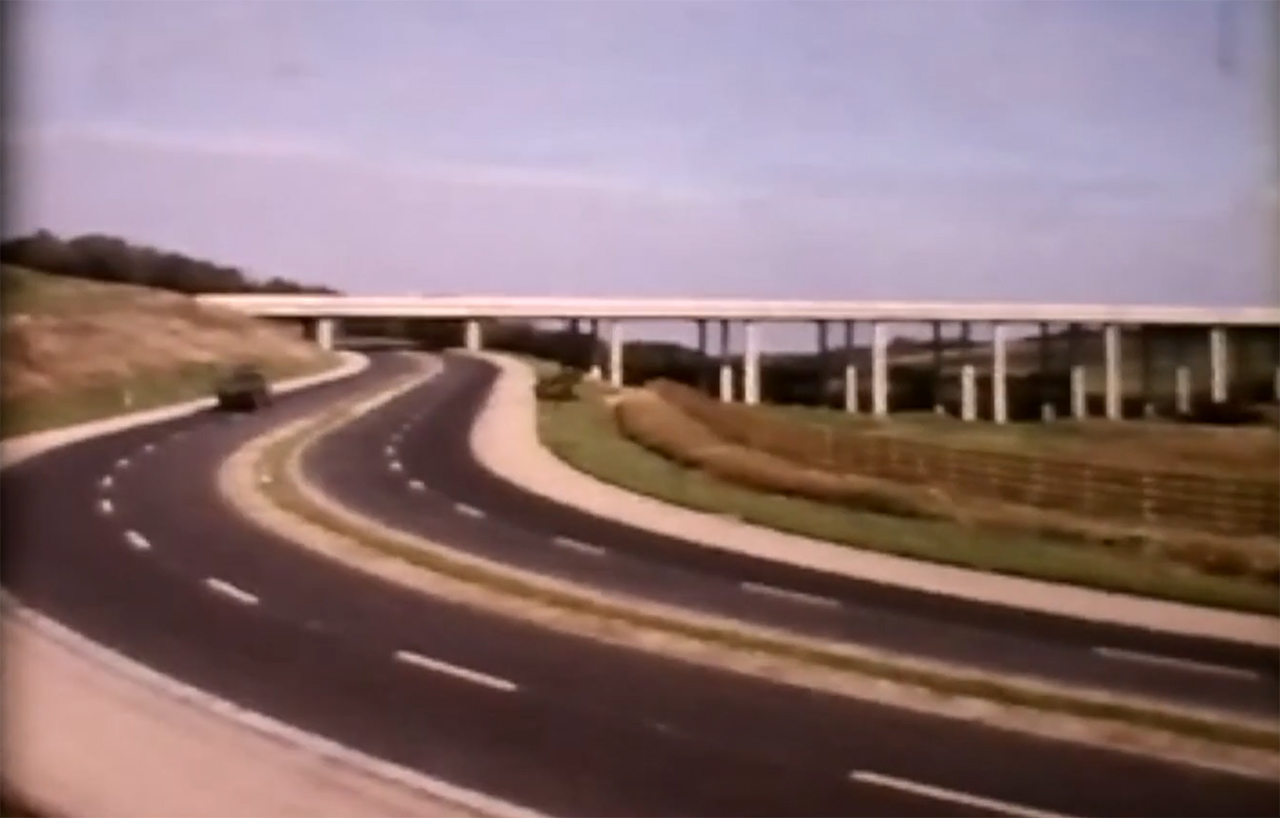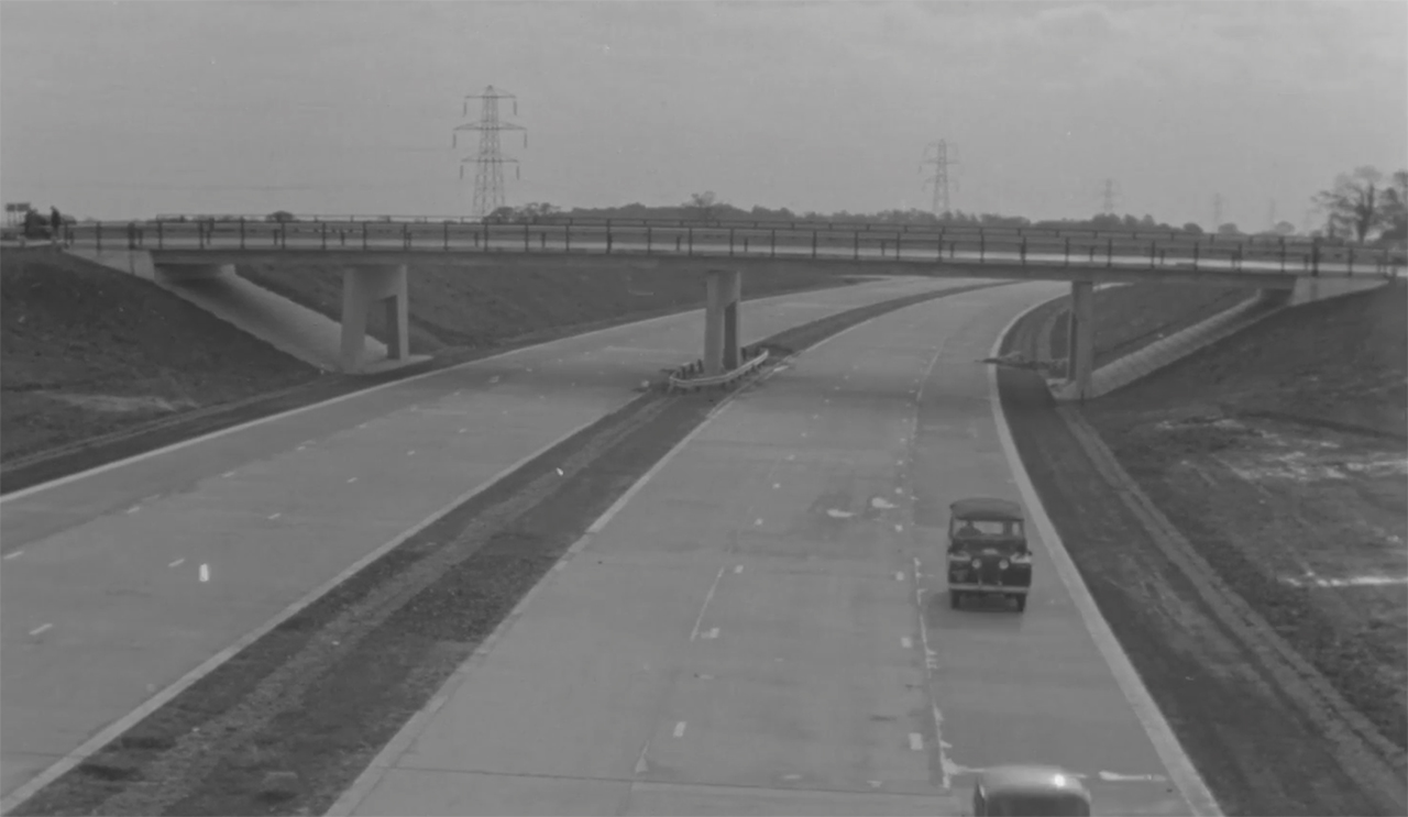 A shot of the M1 as it appeared in 1959; one of the best-built motorways that there would be for some time, but still showing scant regard for safety.