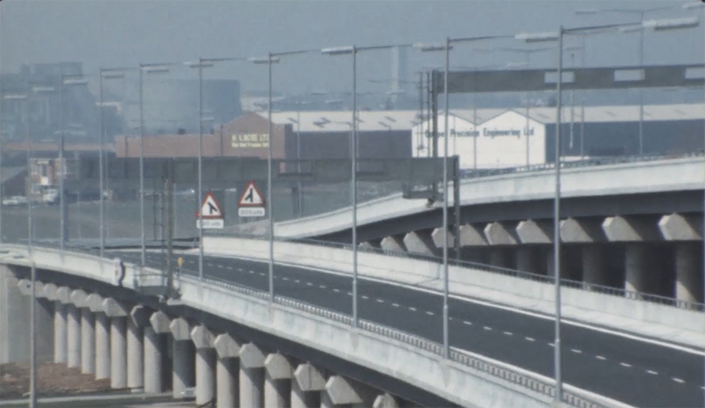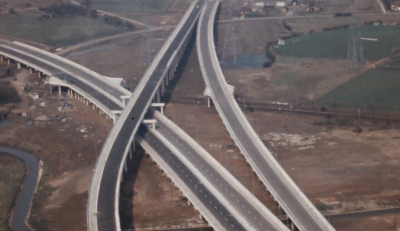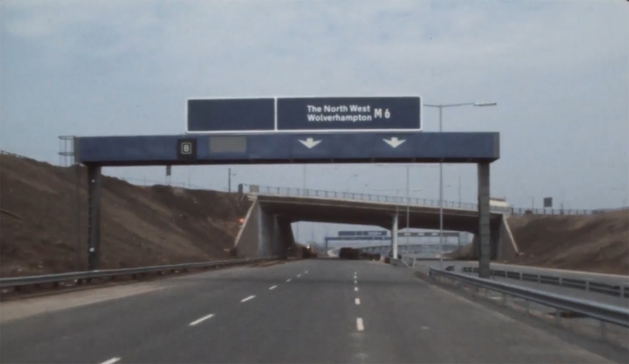 Looking south-east as the M6 flies over the M5. The brand new concrete looks rather majestic, with no hint as to how infamous this junction would become.