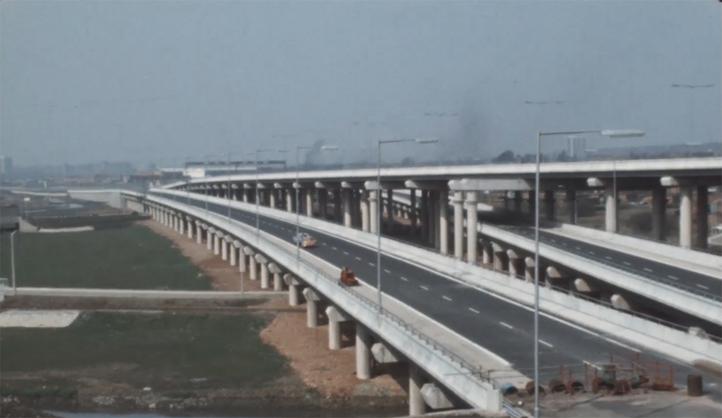 The Mill Hill bridge on the Shoreham Bypass. The road was built with two lanes with space for a third on the left.