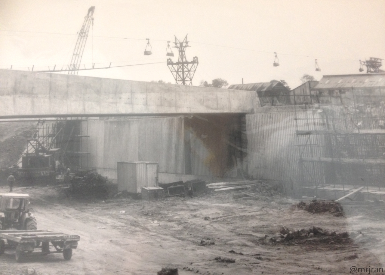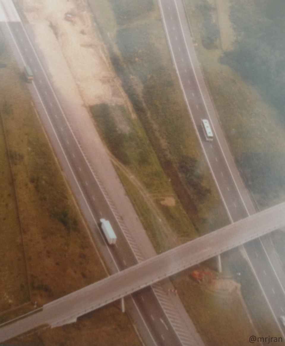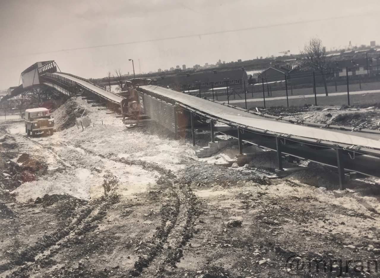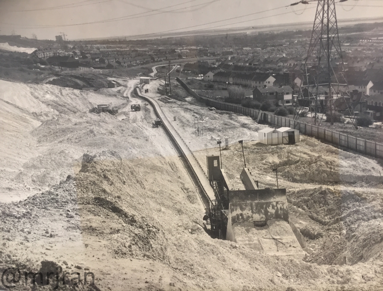 The large conveyor belt which was used to move land dug from the cutting at J11 to the sea at J12. It ran through Paulsgrove, where a gap in the post-war housing had been left for the motorway.